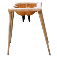 3. มีโต๊ะขาตั้งทำด้วยไม้ขัดเรียบ ลักษณะเป็นโต๊ะ 4 ขาขนาดกว้างไม่น้อยกว่า 28 เซนติเมตร