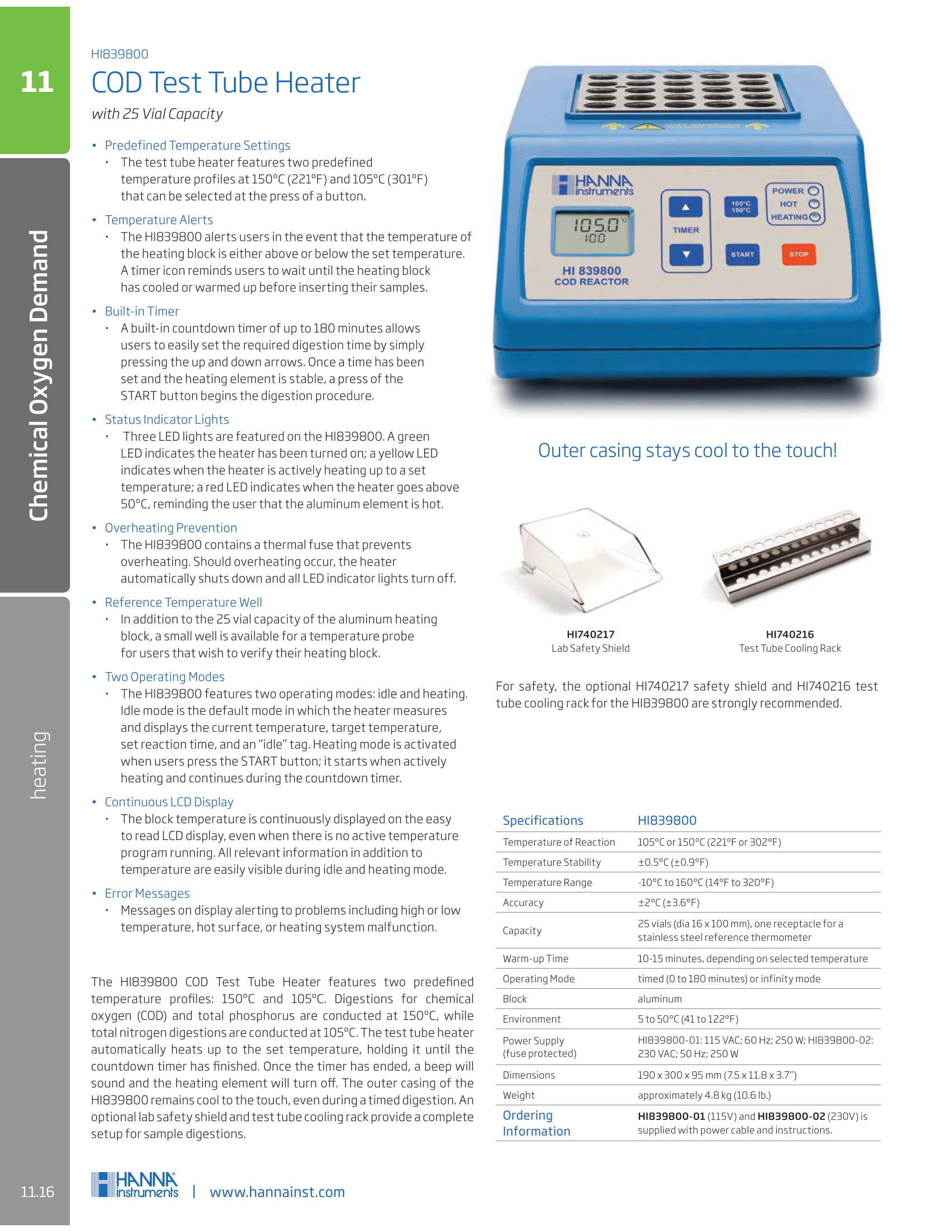 รายละเอียดเตาย่อยอุณหภูมิสูงสําหรับวิเคราะห์ค่า COD รุ่น HI 839800-02 2008